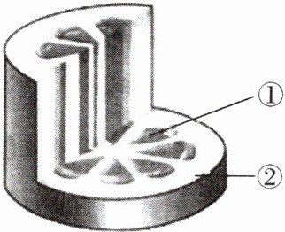 1. 在盛有稀释红墨水的锥形瓶中插入带叶的杨树枝条,基部浸于液面下,放于温暖、光照充足的地方 1 h 后,将茎横切,发现①部位呈现红色(如图)。由此可以推断茎中运输水和无机盐的结构是( )
