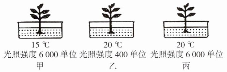 B 解析:在题中给出的三个实验装置中可以形成两组对照组:甲和丙、乙和丙,其中甲和丙光照强度相同,植物相同,唯一变量是温度;而乙和丙温度相同,植物相同,唯一变量是光照强度。甲和乙不能形成对照组,因为存在光照强度和温度两个变量,故题图装置可以组成二组对照实验。