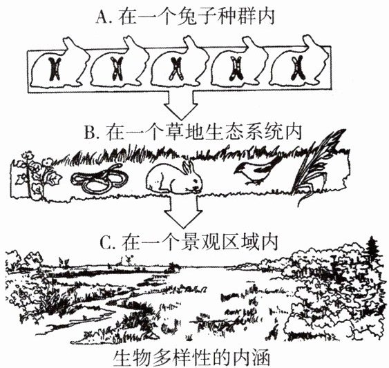 (2)图中B项显示了草地上,除了兔子外,还生活有许多其他生物,表示了______多样性。