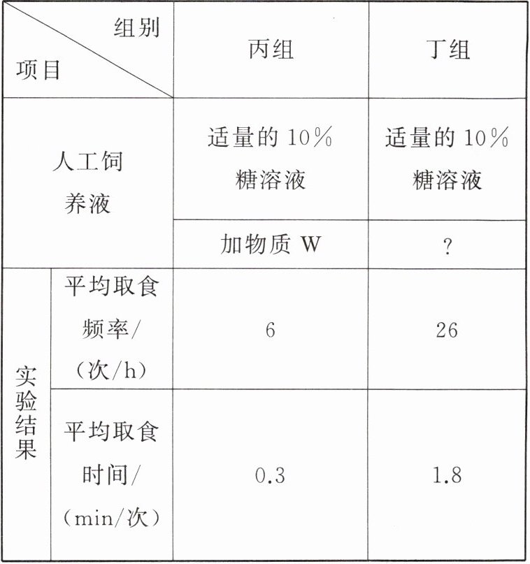 (6)根据丙、丁两组数据,可以得出的实验结论是______。支持该结论的实验结果是丙组的平均取食频率比丁组____(填“高”或“低”);丙组的平均取食时间比丁组____(填“长”或“短”)。