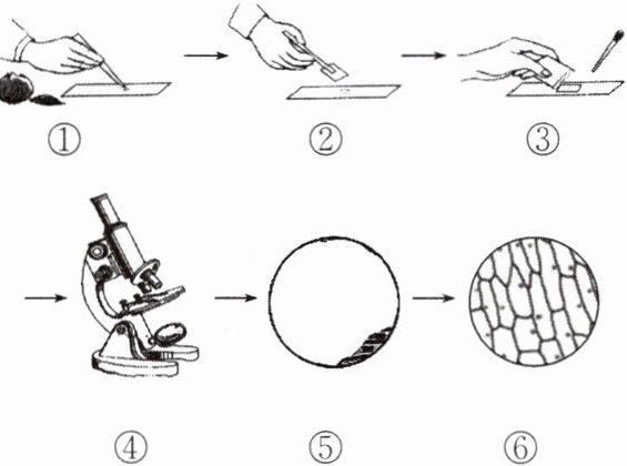 5. 如图为洋葱鳞片叶内表皮细胞临时装片制作与观察的部分步骤,请据图回答下列问题。