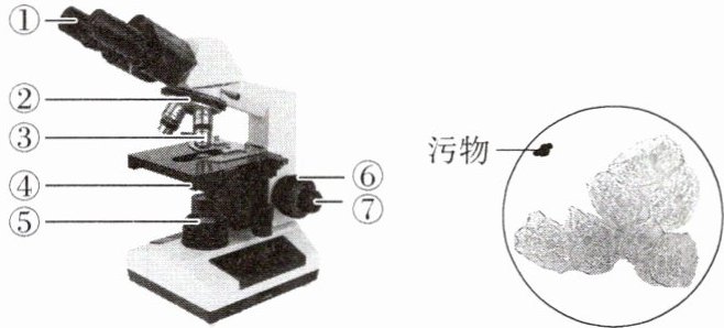 (4) 操作时,发现视野中出现了污物。转动目镜,污物不动,移动玻片后,污物还是不动,那污物最有可能在______上。