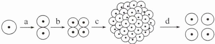 (2) 图中表示细胞分裂的是____,表示细胞生长的是____。(填字母序号)