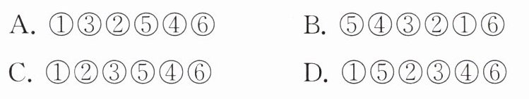 A 解析:制作徒手切片的步骤:①将新鲜的叶平放到载玻片上、③右手捏紧并排的两个刀片、②横向迅速切割叶、⑤把刀片夹缝中存在的薄片放入水中、④选用最薄的一片制成临时装片、⑥观察叶横切面的临时切片,分清叶的表皮、叶肉与叶脉。因此正确的排列顺序是①③②⑤④⑥。