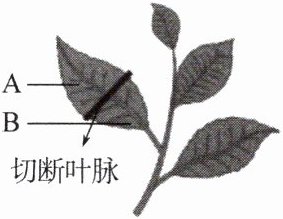 8. 某兴趣小组同学选取西红柿植株的一片叶的叶脉切断(如图),然后将其放置黑暗处一昼夜,再进行光照2~4小时,取下处理过的叶,酒精脱色漂洗后滴加碘液,发现A部分不变蓝,B部分变蓝,该实验说明光合作用需要( )