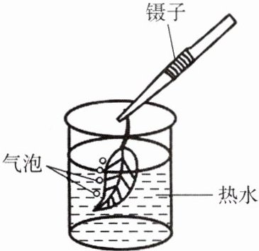 8. 将刚摘下的叶放入70℃的热水中(如图),会发现叶表面有许多小气泡产生,并且下表皮的气泡比上表皮的气泡多,这种现象说明了叶的( )