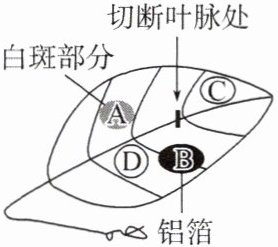 D.将该叶取下,脱色处理后滴加碘液,只有D处变蓝