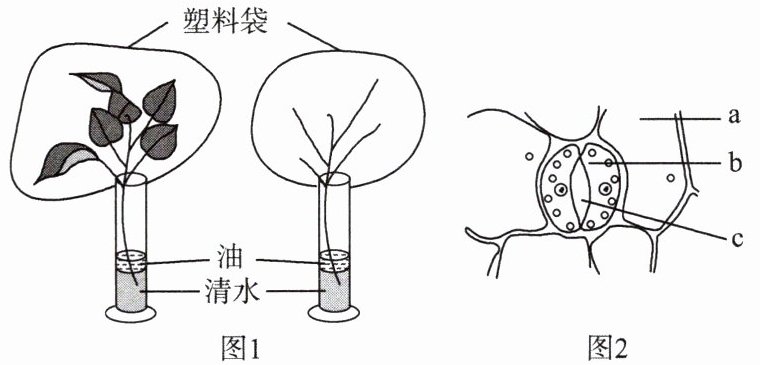 (2)同学们用显微镜观察了大棚植物的叶表皮结构(如图2)。图中b是______,c是______,植物可以通过b的形状和大小来控制______的进出和水的散失。