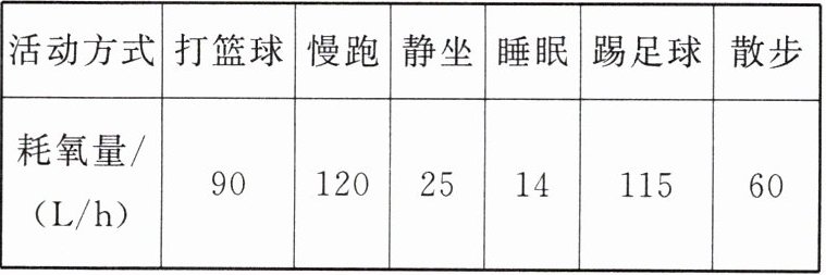 (1)生命在于运动,如表是各种活动方式在单位时间内的耗氧量,你认为最佳的减肥活动方式是______。