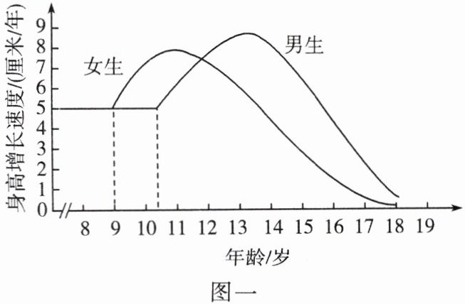 (2)图一是某中学男、女生身高增长速度的曲线图,从图中可看出,男、女生进入青春期的显著特点是______,且女生进入青春期比男生______(填“早”或“晚”)。