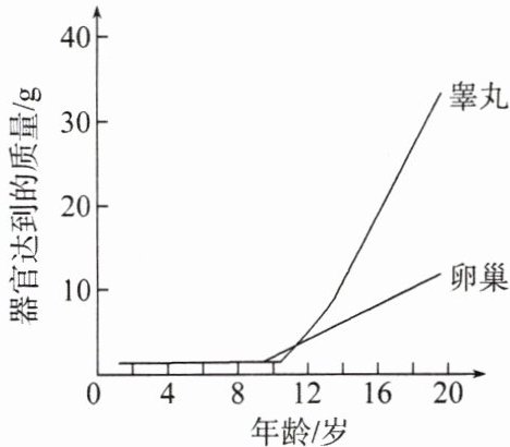 9. 如图是男、女主要生殖器官发育趋势图,据图分析不能得出的结论是( )