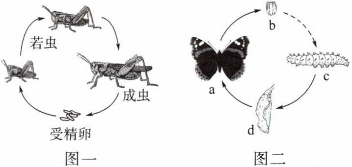 B.图一中昆虫的个体发育过程属于不完全变态发育