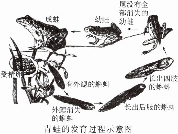 (2)抱对:雌雄蛙抱对,促使它们同时排出生殖细胞,在水中相遇完成____,大大提高受精率。
