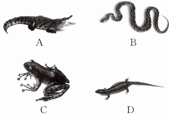 C 解析:鳄鱼、蛇、蜥蜴都属于爬行动物,受精方式是体内受精;青蛙雌雄异体,雌雄蛙分别把卵细胞和精子排到水中,精卵在水中结合形成受精卵,这种受精方式称为体外受精。
