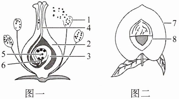 14. (2024·潍坊模拟)图一是传粉、受精过程示意图,图二是果实结构示意图。下列叙述错误的是( )