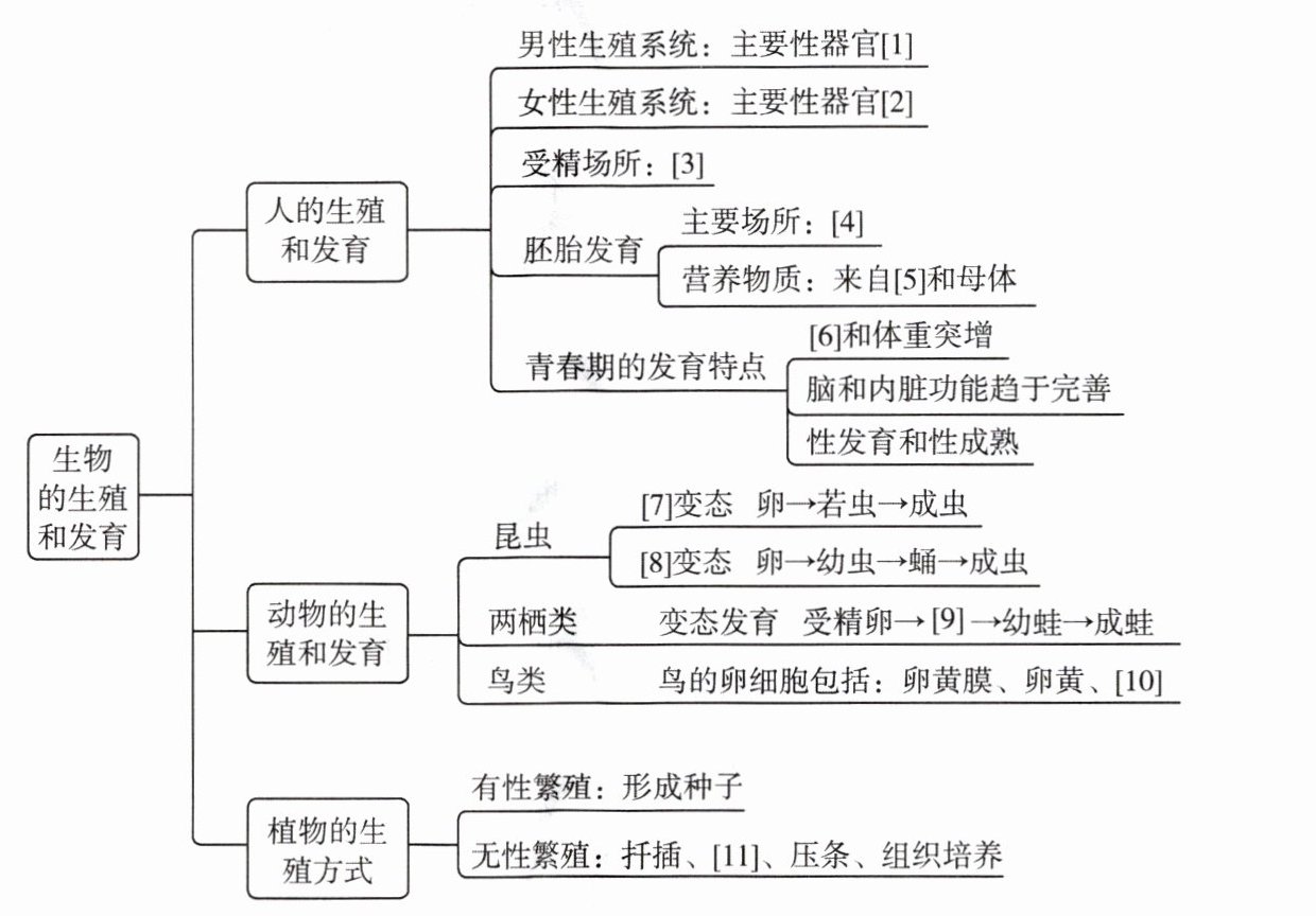 A[生物的生殖和发育] --> B[人的生殖和发育]
