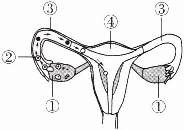 C 解析:①是卵巢,能产生卵细胞和分泌雌性激素。进入青春期,女孩会来月经是与[①]卵巢分泌的雌性激素有关。