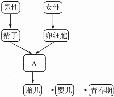 (1) “我”的生命开始于图中的[A]____;女性的生殖细胞是____。