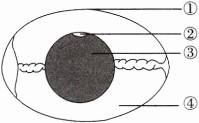 C 解析:[①]卵壳保护鸟卵的内部结构;卵黄上的小白点叫作[②]胚盘,含有细胞核,将来发育成鸟的胚胎;③是卵黄,为胚胎发育提供营养,气室能为鸟卵的发育提供氧气;④是卵白,既能保护卵细胞又能为胚胎发育提供水分和营养。