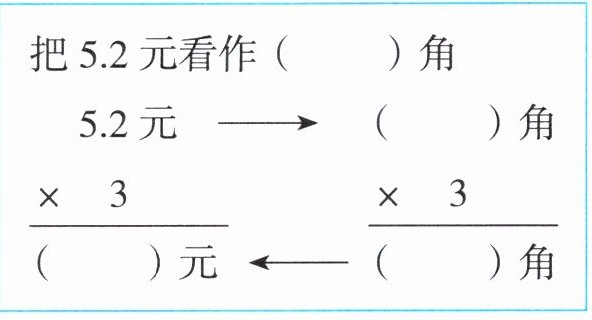 $ \begin{array}{r} 5.2 元 \\ × \quad 3 \\ \hline ( ) 元 \end{array} $
