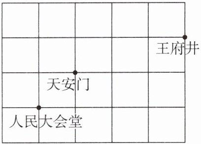 4. 右图所示是天安门广场周围景点分布示意图的一部分,如果人民大会堂的位置用数对表示为$(1,1)$,王府井的位置用数对表示为$(5,3)$,则天安门的位置用数对表示为$(\quad,\quad)$。