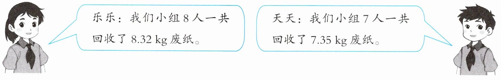 天天:我们小组 7 人一共回收了 $7.35$ kg 废纸。