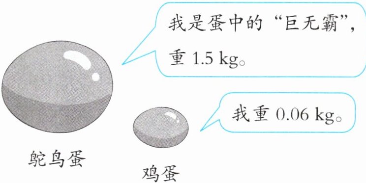 2. 如图所示,鸵鸟蛋的质量是鸡蛋的多少倍?