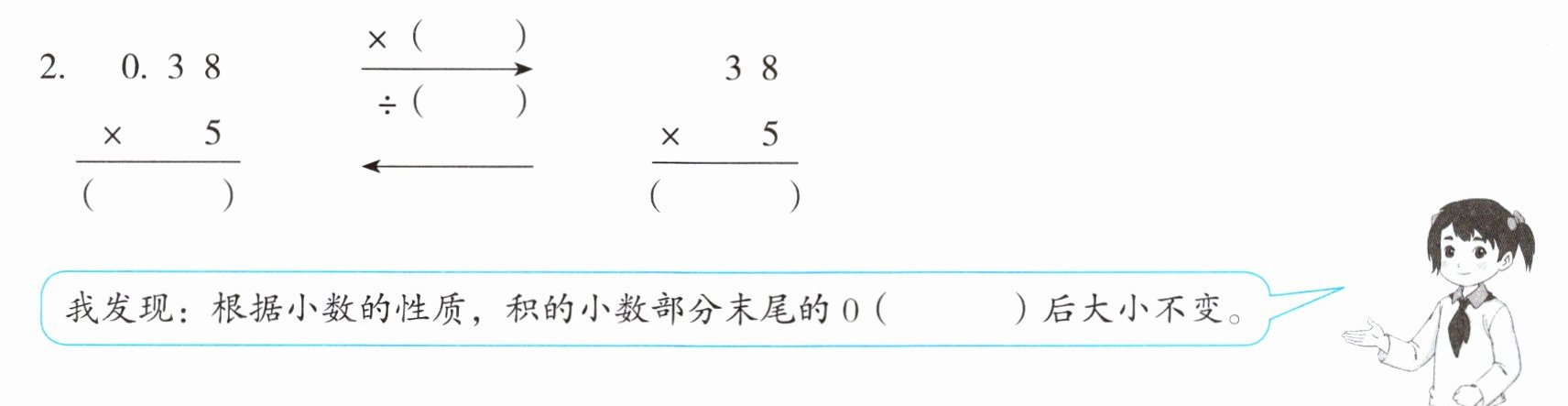 我发现:根据小数的性质,积的小数部分末尾的 0 ( ) 后大小不变。