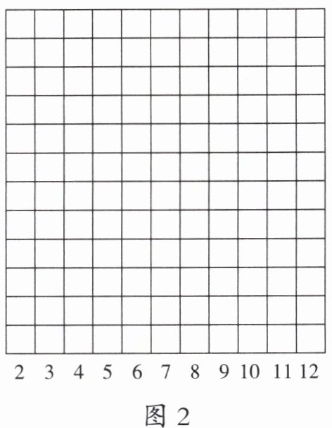 (4)共掷 50 次,结果如下表。和是几,就根据该和出现的次数在图 2 中几的上面涂上对应的格数。