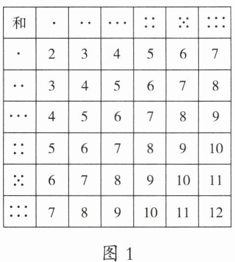 2. 明明和乐乐周末一起玩掷骰子游戏。同时掷出两个骰子,并制作了图 1。