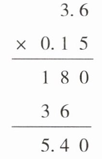 $\begin{array}{r} 3.6\\ ×0.15\\ \hline 180\\ 36\\ \hline 5.40\end{array} $