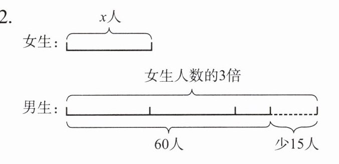 2. A 列车每小时行驶 350 km,比 B 列车行驶速度的 2 倍少 70 km,则 B 列车每小时行驶多少千米?