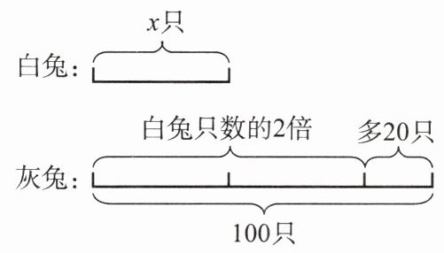 1. 2x + 20 = 100,x = 40 2. 3x - 15 = 60,x = 25