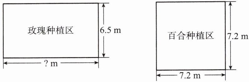 解:设玫瑰种植区的长是x m,则6.5x-7.2×7.2=1.46 x=8.2