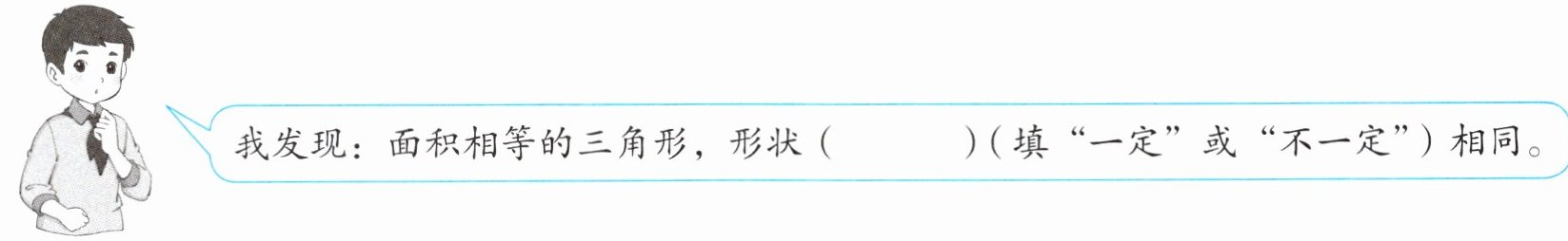 我发现:面积相等的三角形,形状( )(填“一定”或“不一定”)相同。
