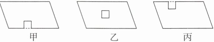 1. 如图是三个完全相同的平行四边形,从中各剪去一个完全一样的正方形,则剩下部分的面积相比,( )。
