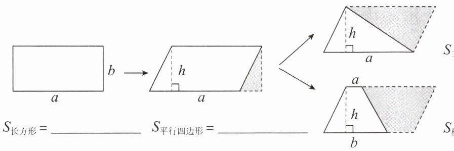 $ S_{长方形} = $______ $ S_{平行四边形} = $______ $ S_{三角形} = $______
