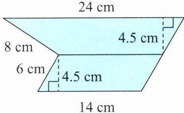 4. $S=(a+b)h÷2+ah=(14+24)×4.5÷2+14×4.5=148.5\ (cm^2)$