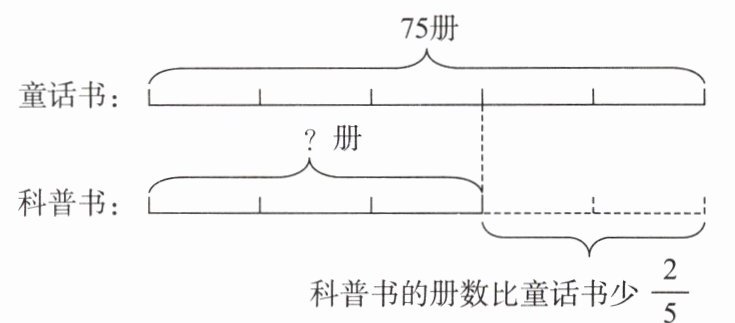 2. 童话书的册数$× \left(1-\dfrac{2}{5}\right)=$科普书的册数 $75× \left(1-\dfrac{2}{5}\right)=45$(册)(方法不唯一)