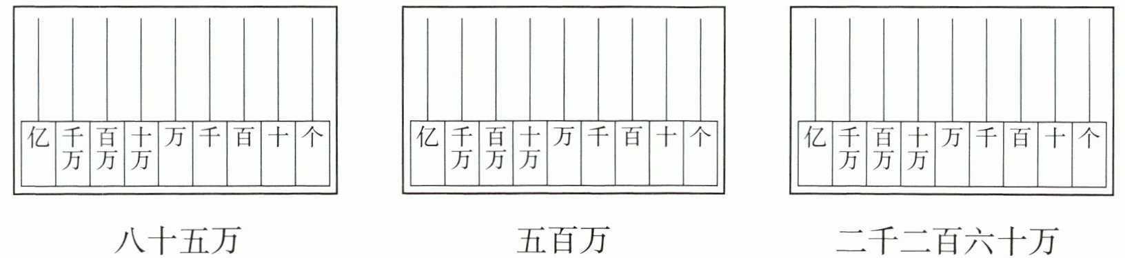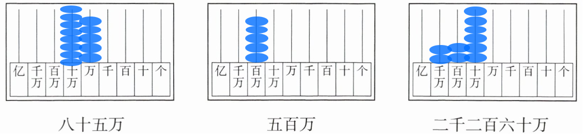 三、在计数器上拨数(在对应数位上画出相应个数的珠子)。