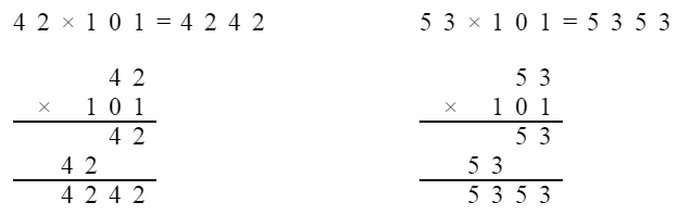 1. 一个两位数乘101,积就等于把这个两位数连写两遍所得的四位数。