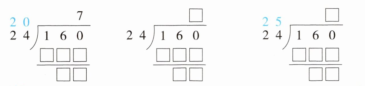 $\begin{array}{r}□ \\24\enclose{longdiv}{160} \\□□□ \\\hline□□ \\\end{array}\\□□□ \\\hline□□ \\ $