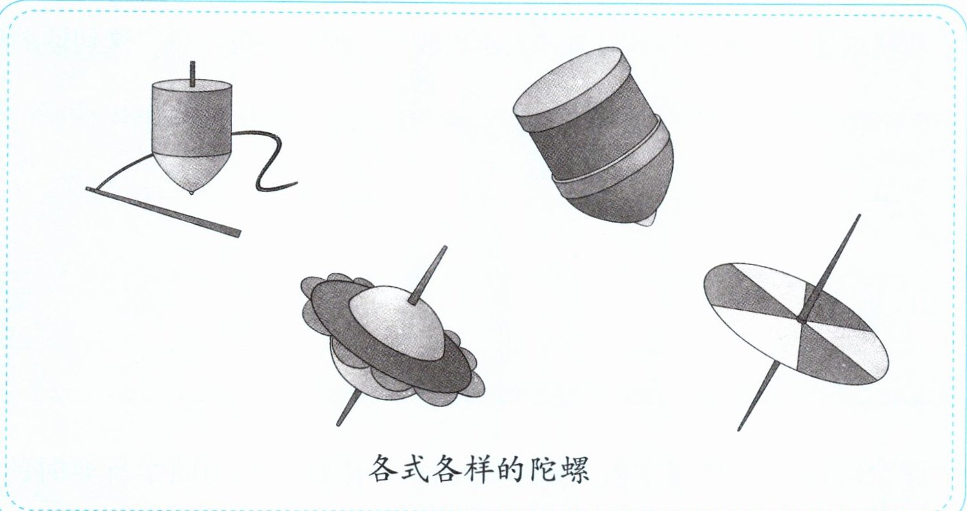 陀螺给作者的童年带来了无限乐趣。课下,请同学们搜集一些陀螺的资料,有兴趣的同学还可以尝试制作一个陀螺,制作时要注意安全。