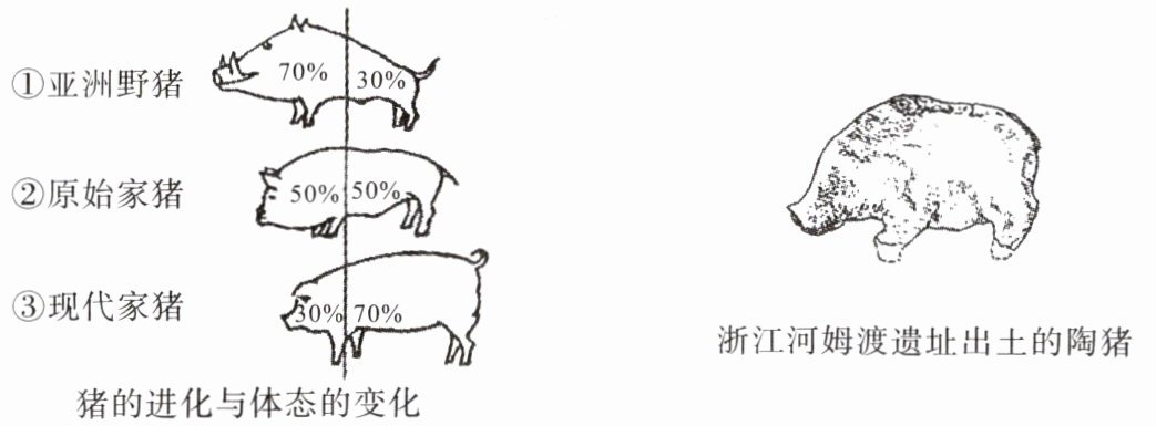 6. 研究表明,野生动物被饲养后,体态和骨骼会发生明显的变化。分析下图信息可知(