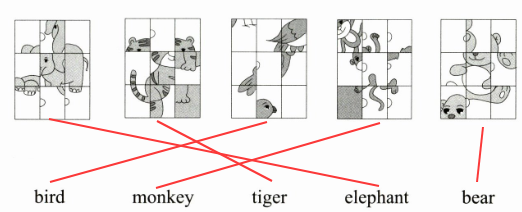 五、下面的拼图是什么动物呢?仔细观察图片,连一连。