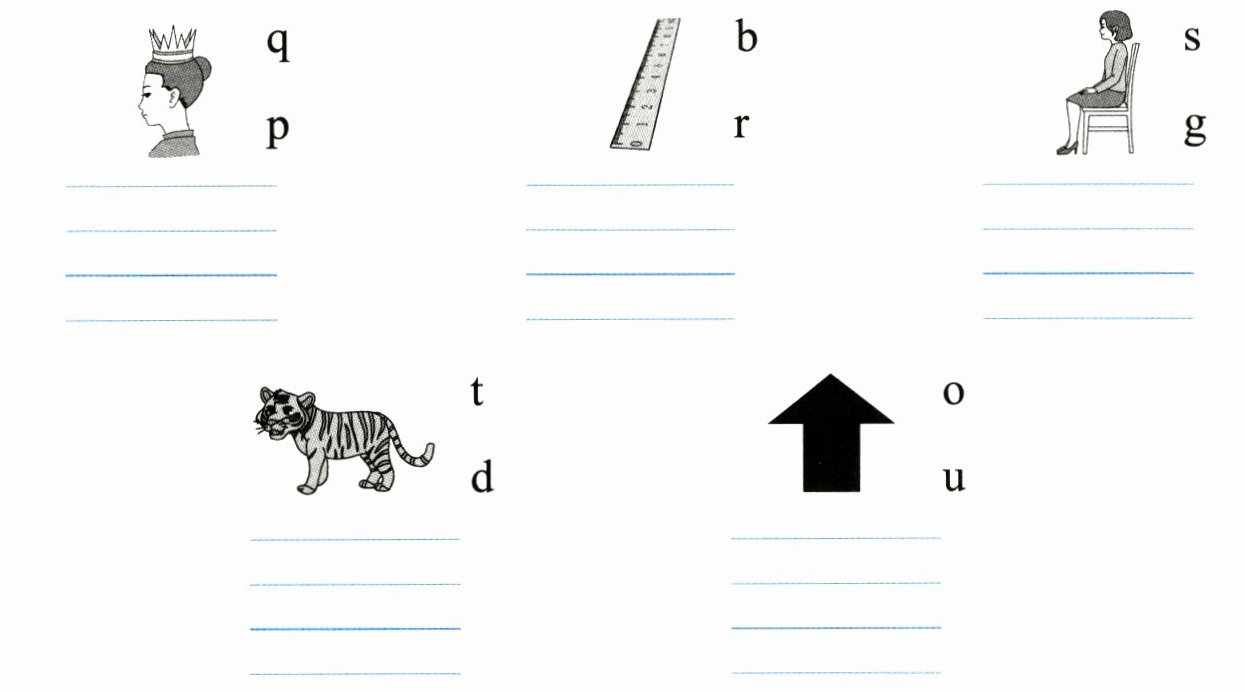 六、看图,圈出单词的首字母,并在四线三格里写出该字母的大小写形式。
