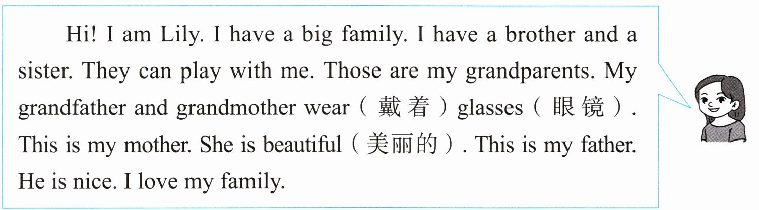 ) (3) I love my family.3. 看照片,选一选,将序号写在横线上。