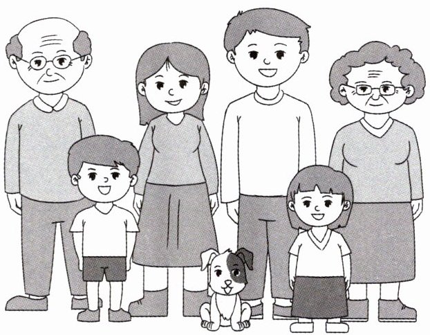四、你能说出这是哪一位家庭成员吗?请选择正确的单词,将序号写在横线上,其中有一项为多余选项。