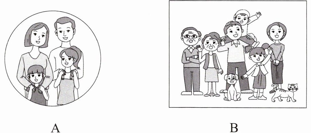 Hi, I’m Alice. I have a ( big/small ) family. Look, this is my dad. He has big ( eyes/ears ). My ( mother/grandmother ) has big eyes too. Look! The girl is my ( sister/brother ). She’s 9. I play with her. This is my ( family/friends ). I love my family.