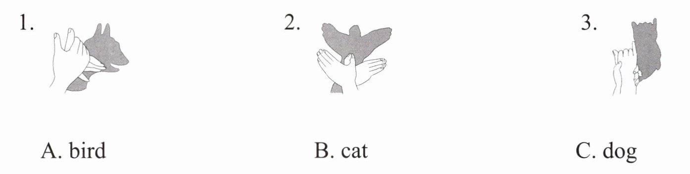 一、同学们在玩动物手影游戏,仔细观察图片,连一连正确的单词。